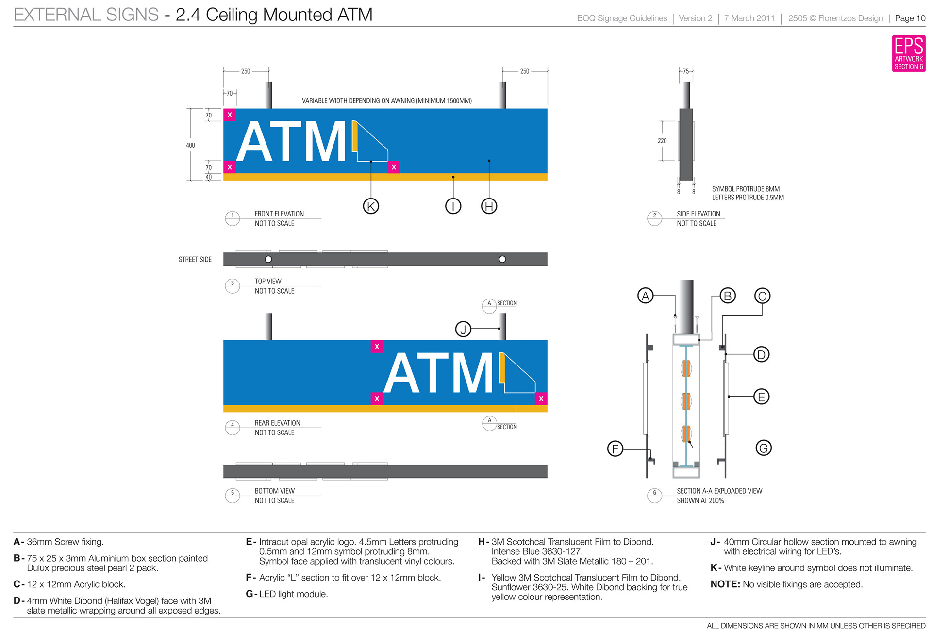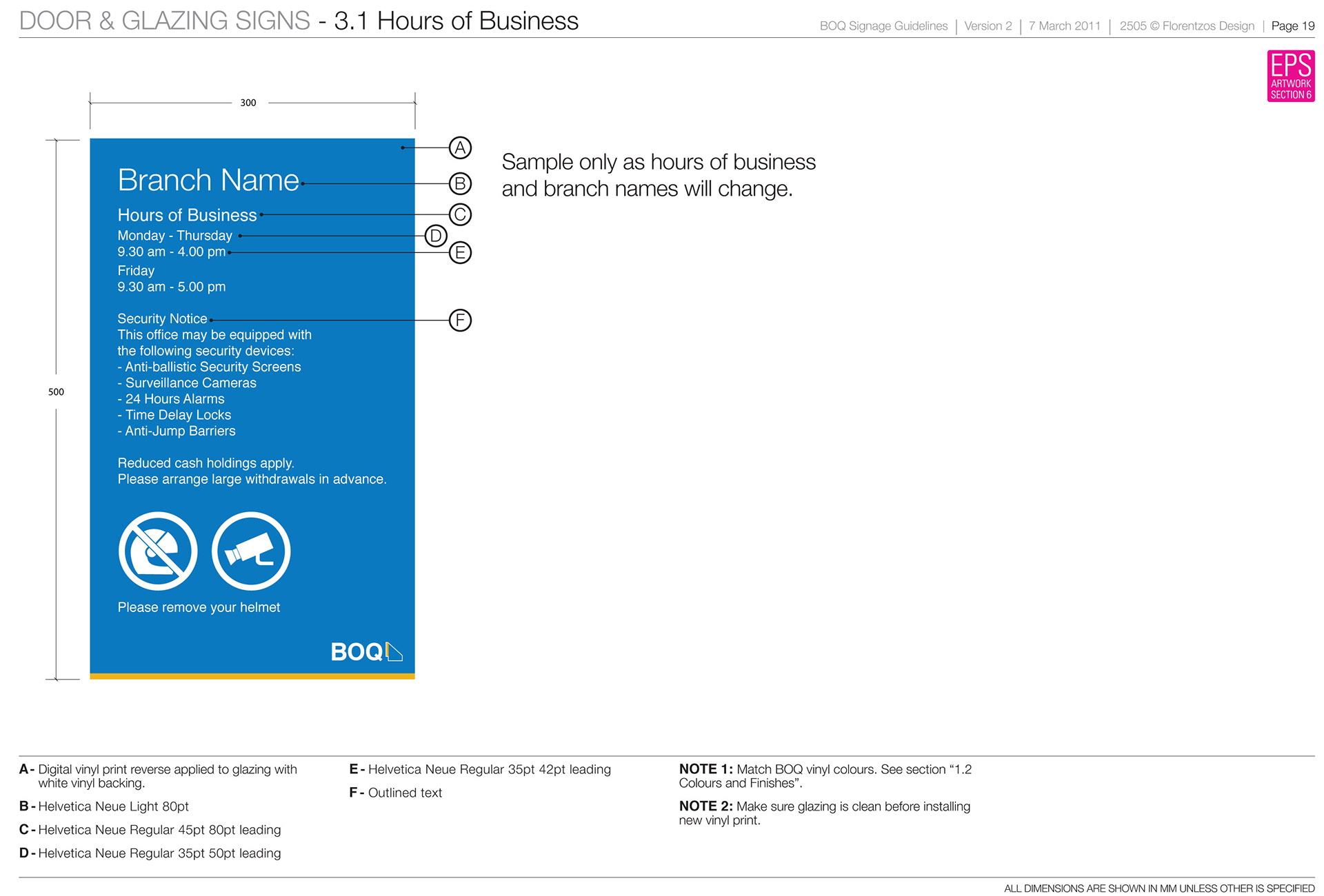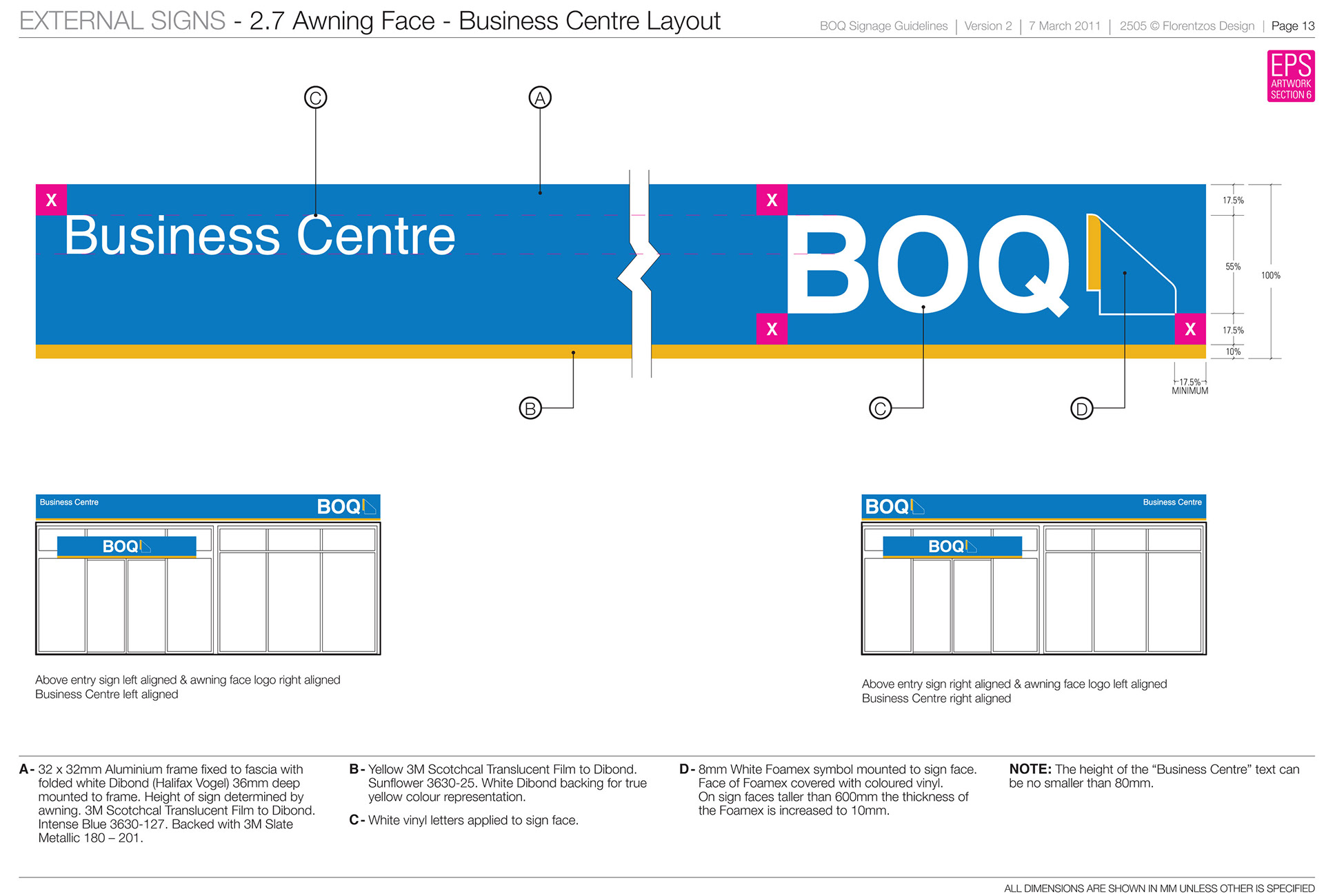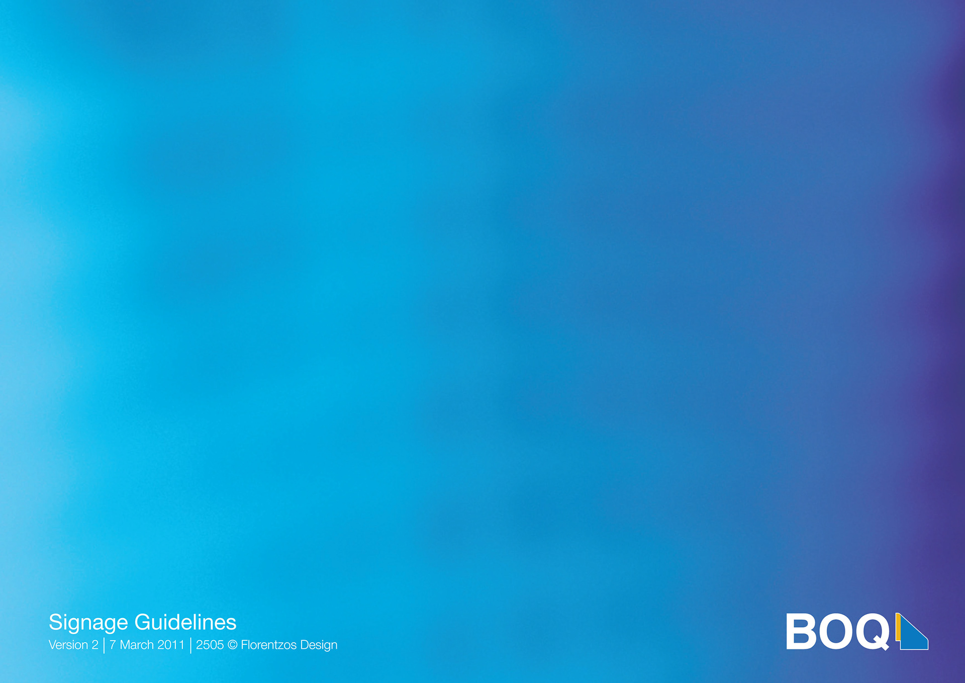 Signage Guidelines for BOQ, one of Australia's large, national banks. These signage guidelines have been implemented and adhered to for every BOQ branch in Australia.