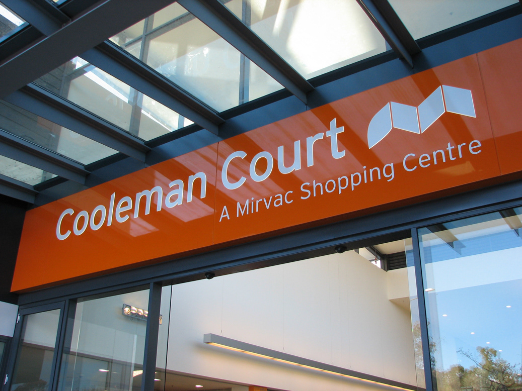 Interior signage for Mirvac's Cooleman Court Shopping Centre in Canberra.