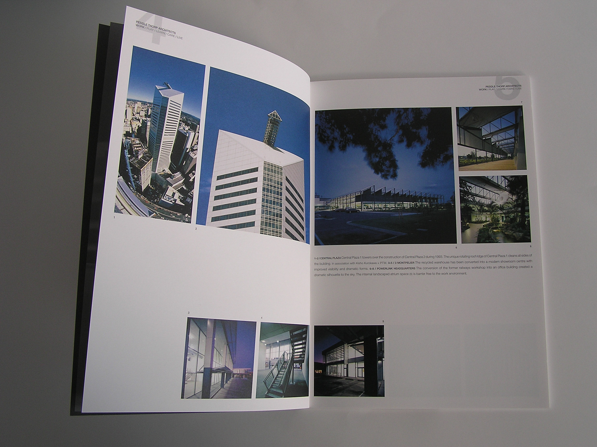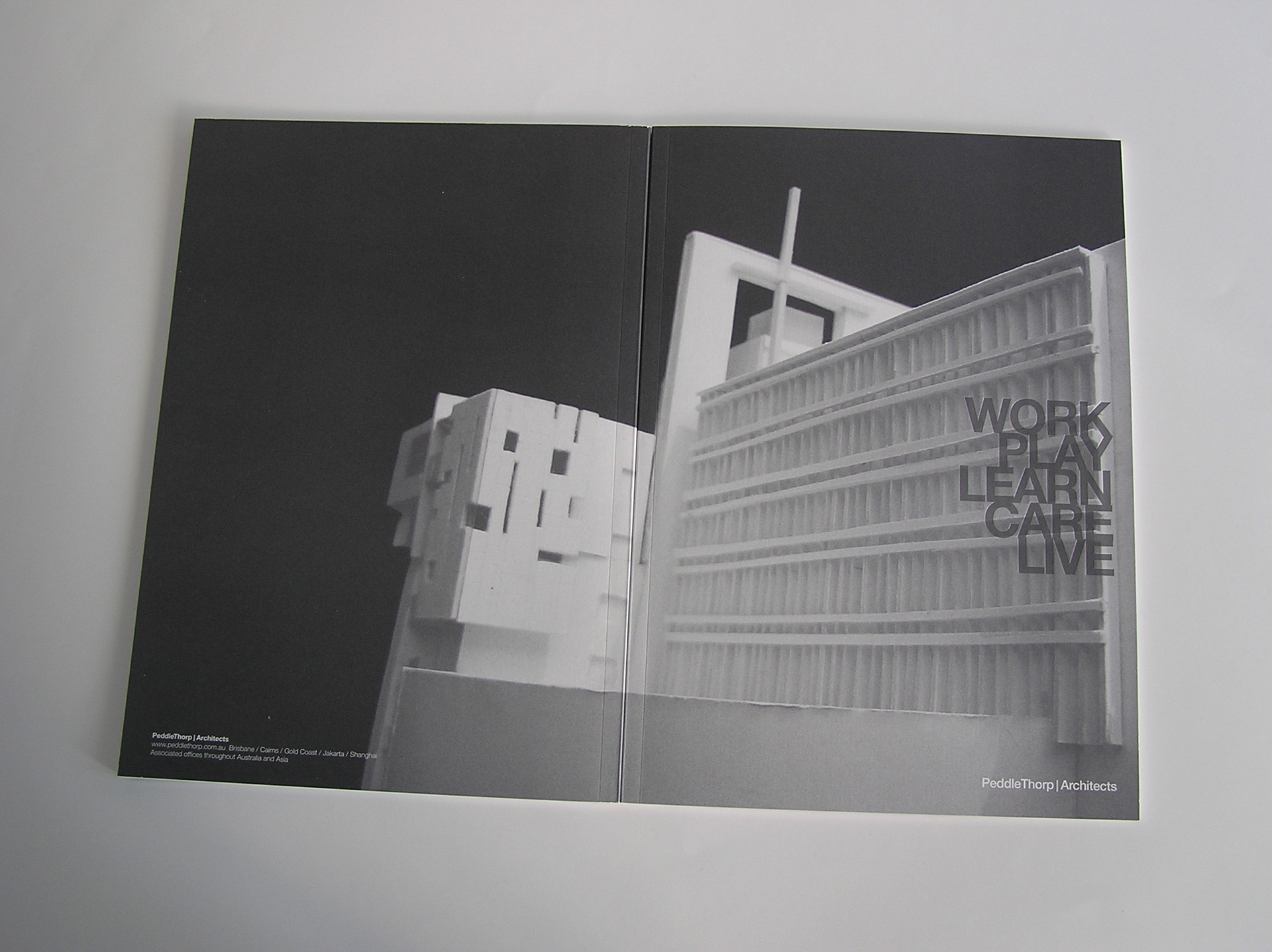 Marketing book designed for Peddle Thorp Architects' Brisbane office.
