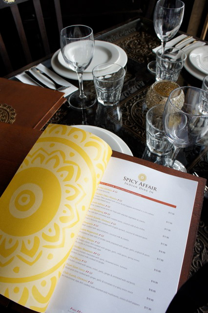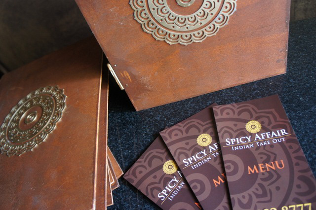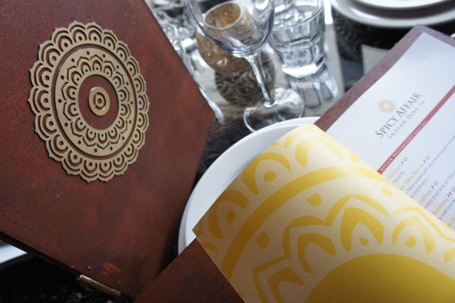 Branding and application for Spicy Affair Indian restaurant.