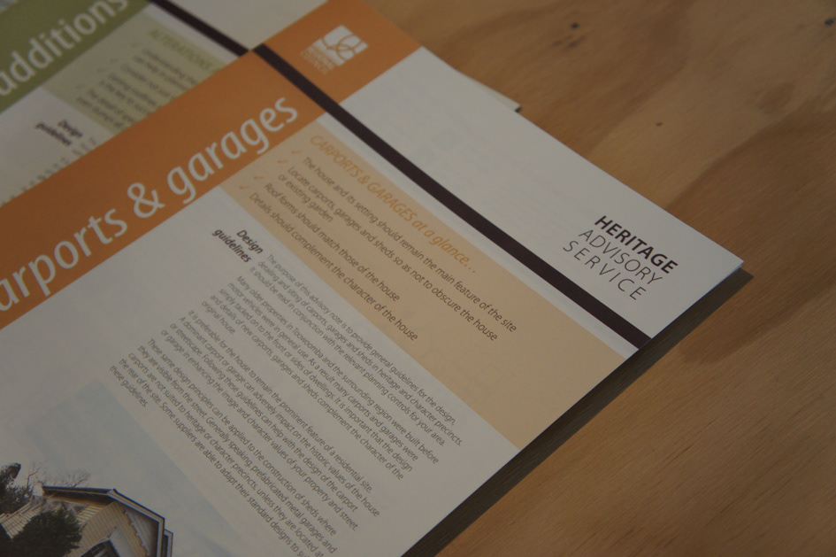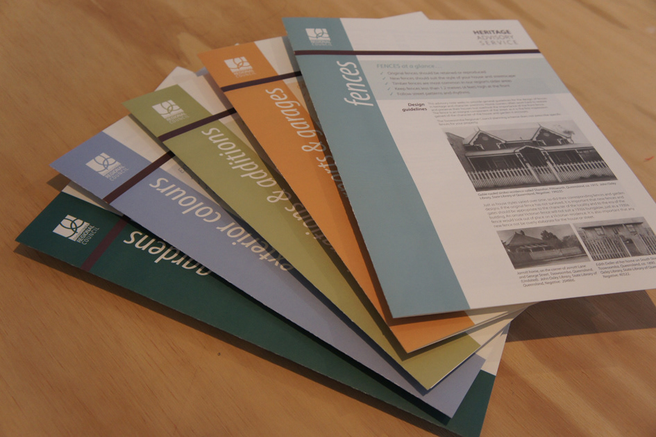 A beautiful educational brochure system designed for the Toowoomba Regional Council Heritage Advisory Service in collaboration with Stephanie Keays.